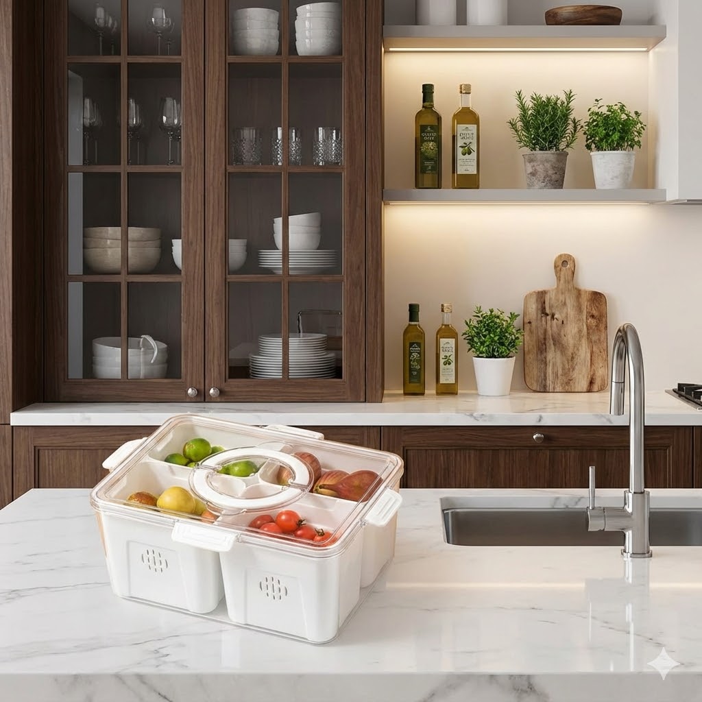 Transforme a organização da sua geladeira e despensa com o Organizador de Alimentos Hermético com Divisórias. Desenvolvido para quem valoriza praticidade, higiene e estética, ele permite armazenar frutas, legumes e outros alimentos de forma separada, preservando frescor e facilitando o dia a dia.
